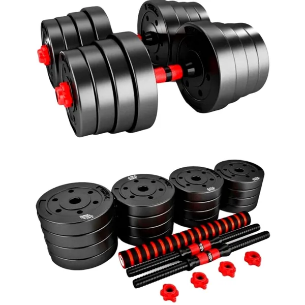 A 2-in-1 set consisting of 2 dumbbells and a bar.