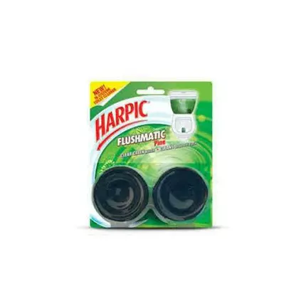 - Harpic Flushmatic toilet cistern block is a toilet hygiene product for continuous cleaning without any mess. It is touch free and hygienic and dissolves completely when finished. A single block lasts up to a month depending upon individual usage.