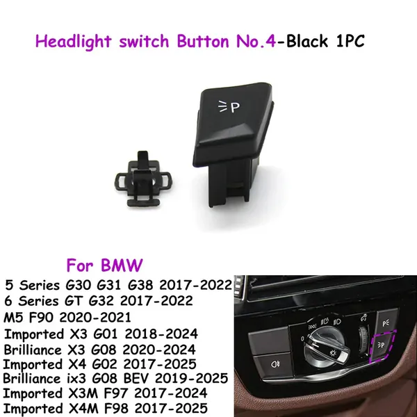 COMPATIBLE WITH BMW 5 SERIES G30 6 SERIES GT G32 2017-2023 CAR HEADLAMP HEADLIGHT FOG LAMP LIGHT UPPER DIPPER NIGHT VISION ROTARY SWITCH KNOB BUTTON 4