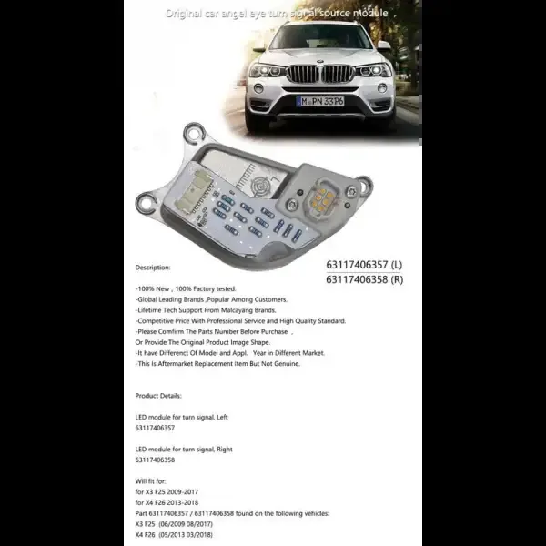 Compatible With Bmw X3 F25 X4 F26 2010-2018 Headlight Drl Daytime Running Light Led Light Angel Eyes Control Unit Turn Signal Cornering Indicator Light Module 63117406357 Left