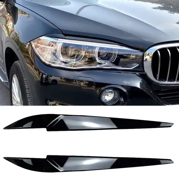 Compatible With Bmw X5 F15 X6 F16 2014-2019 Headlight Eyebrow Eyelid Cover Decoration Trim Glossy Black AR-BMW-0191