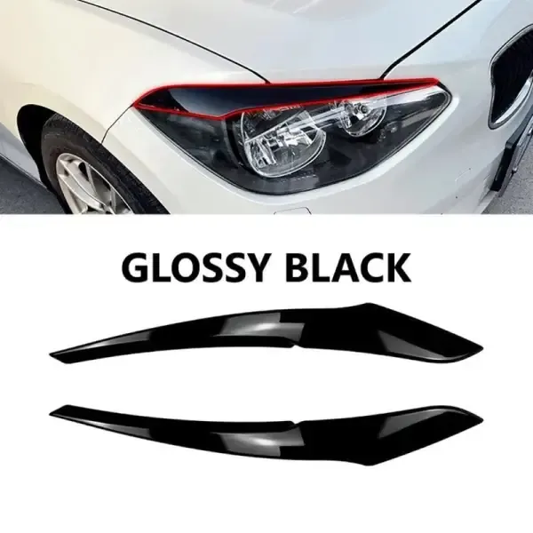 Compatible With Bmw 1 Series F20 2010-2014 Headlight Eyebrow Skirts Cover Trim 2 Zst-438 Glossy Black