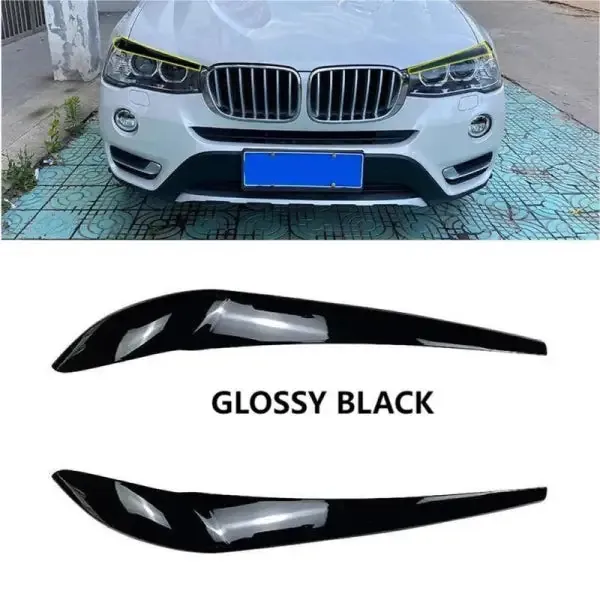 Headlight Eyebrow Spoiler Skirts Lip Splitter Flag Zst-355 Gb Glossy Black CC-3951 Compatible With BMW X3 F25 LCI 2014-2017