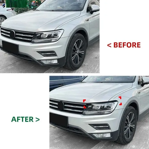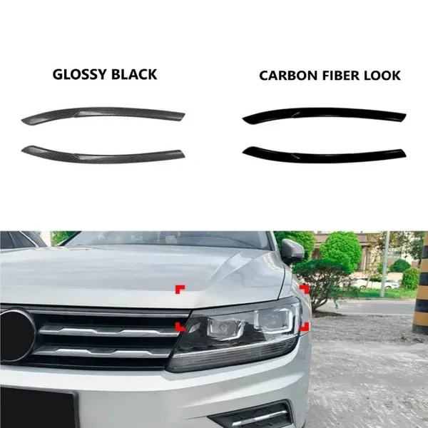 COMPATIBLE WITH VW VOLKSWAGEN TIGUAN MK2 2017-2020 CAR HEADLIGHT EYELID LAMP EYEBROW SKIRTS SPLITTER ZST-1213 GB GLOSSY BLACK