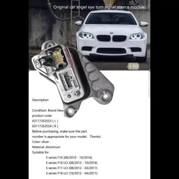 Headlight Module Control Unit Led Turn Signal Cornering Indicator Light 63117352554 Right CC-4558 Compatible With Bmw 5 Series F10 F07 Lci 2014-2017