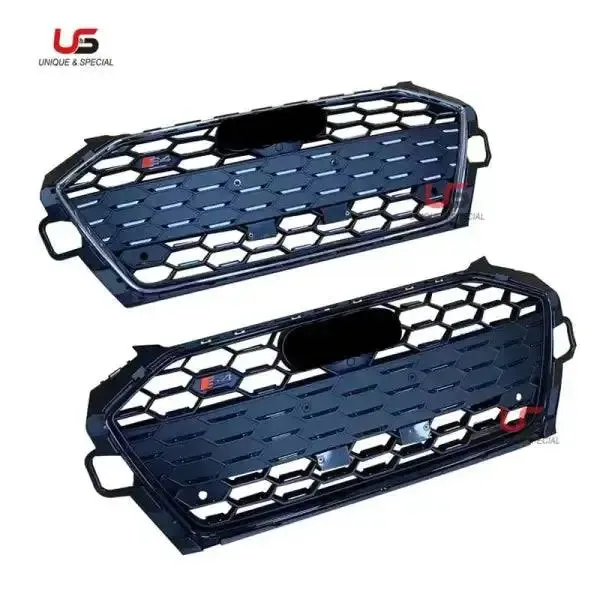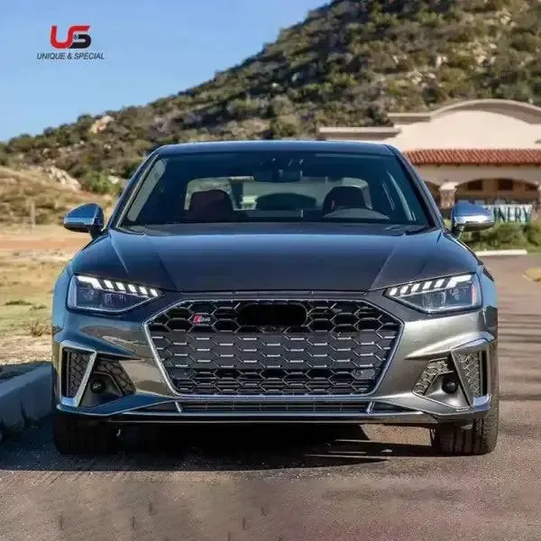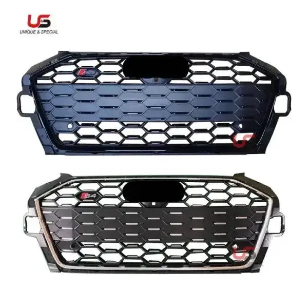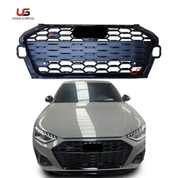 High Quality Auto Front Grille Upgrade to S4 Silver Gloss Black Frame Bumper Grille ABS Material Compatible With Audi A4 S4 2020-2021