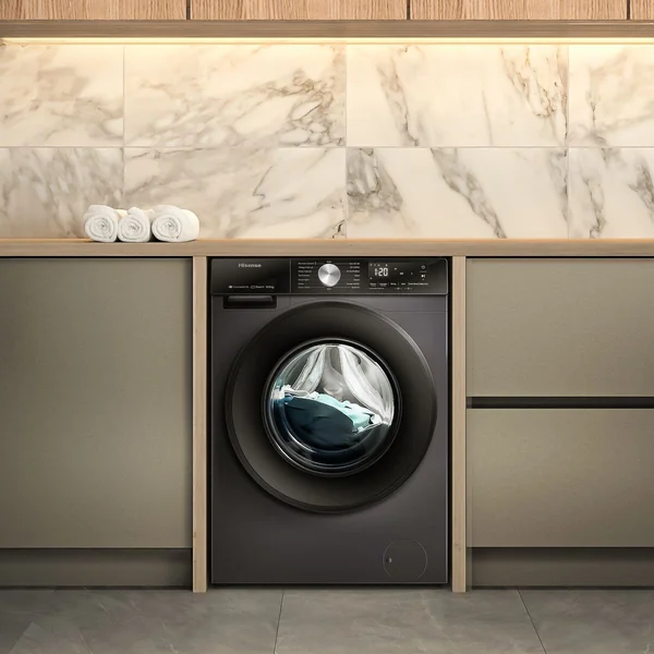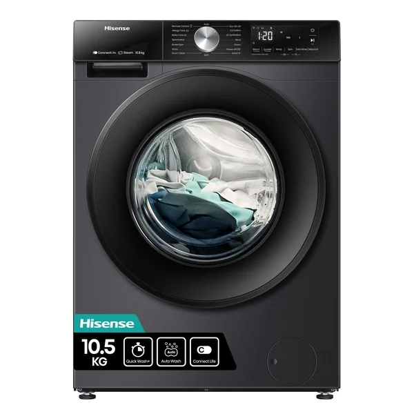 Discover the Hisense 10.5 kg Smart Front Load Washing Machine, designed for efficiency and convenience. Its Titanium Grey finish and smart connectivity blend elegant design with modern functionality for an enhanced laundry routine.