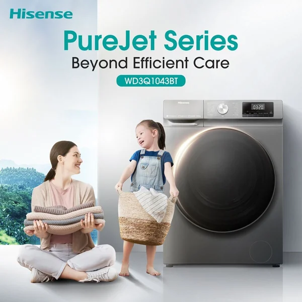 The Hisense WD5S1245BB is a premium front-load washer and dryer combo, offering a large 12kg washing and 8kg drying capacity. Designed for efficiency and deep cleaning, it combines powerful steam programs, a quiet inverter motor, and smart energy monitoring, all available at the best price in Tanzania.