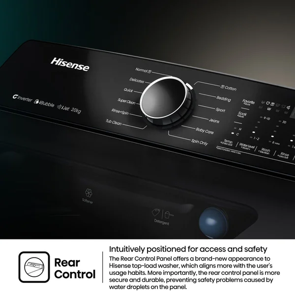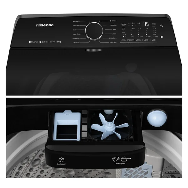 The Hisense Premium WT5i2023DB is a feature-rich 20kg top loader washing machine. Combining a powerful Direct Drive Inverter Motor with smart WiFi connectivity, it offers efficient cleaning, extensive program customization, and advanced care technologies for all fabric types.