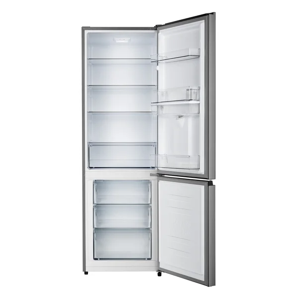 The Hisense H450BIT-WD is a 347L bottom mount refrigerator-freezer in a stylish Titanium Silver finish. It combines generous storage with practical features like a reversible door, adjustable glass shelves, and LED lighting, all while operating with A+ energy efficiency for lower running costs.