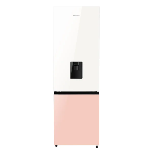 The Hisense 350L Double Door H450BDP-WD refrigerator in Pink & White combines stylish design with practical functionality, offering ample storage and energy-efficient performance for your kitchen.