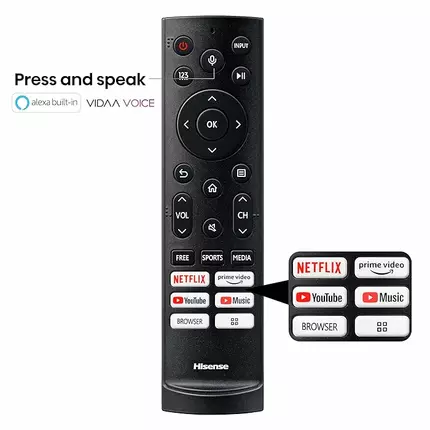 Things are looking bright! The U6 series smart display from Hisense makes Mini-LED accessible to everyone. Mini-LED along with QLED Quantum Dot color technology create a more colorful and realistic picture that appears sharp no matter the light. Whether you’re a move buff, sports fan or gamer, experience the lasts in cinema-quality technology from the comfort of your own home. About this item MINI-LED WITH FULL ARRAY LOCAL DIMMING – Experience the latest in backlight technology. Mini-LED is big on details, showing you the stars in the night sky. Add in the Full Array Local Dimming Pro and every game, show and movie comes into crisp focus. Once you see the darkest darks, whitest whites and brightest brights, there’s no going back. QLED QUANTUM DOT COLOR – See color like you’ve never seen it before. QLED Quantum Dot Technology, significantly broadens the range of color you perceive to create over a billion individual shades. So, you can soak up every wave of the Caribbean Sea and every brushstroke of the desert sunset. DOLBY VISION & ATMOS – Get transported through the screen. Dolby Vision captures even the most subtle emotions flickering across an actor’s face during a dark night scene. And the multidimensional sound of Dolby Atmos puts you smack-dab in the action, whether that’s a jungle, urbanscape or rocketship. GAME MODE PLUS with VRR & ALLM – Game on! Game Mode Plus is a winning combination of technology that gets your name on the leaderboard. Stress less and play more with a Variable Refresh Rate (VRR), Auto Low Latency Mode (ALLM) and AMD Freesync compatibility. GAME BOOSTER120 & MOTION RATE 240 – Take control of your game with blazing fast 120 VRR. Fast Action. No problem. With Motion Rate 240 and MEMC frame insertion, every touchdown pass, 3-pointer and slapshot is crystal clear. HI-VIEW ENGINE – Enhance the quality of your picture. The Hi-View Engine chipset is the brain behind your screen, processing the most dazzling imagery before your eyes. The AI chipset uses deep learning and other innovative technologies, like: Dynamic Tone Mapping Pro, Face Detection, AI HDR Enhancement and AI Detail Enhancement to continuously improve your viewing experience. WIFI 6 – Stream to your hearts content. Access to the 5Ghz bandwidth ensures that you can stream all you favorite movies, sports or games with virtually no lag or buffering. 4X HDMI INPUTS with eARC – Don’t get caught short. While some TV’s only have 3 HDMI, Hisense has 4 high-speed HDMI inputs. Enough inputs to connect all your gear without having to compromise. GOOGLE TV – The entertainment you love. With a little help from Google. Google TV brings together movies, shows, live TV and more from across apps and subscriptions and organizes them just for the user. And helps the user discover new things to watch with recommendations based on their interests. Technical Details Brand Name: Hisense Item Weight: 60.4 pounds Product Dimensions: 3.1 x 57.1 x 31.1 inches Item model number: 65U6N Batteries: 2 AAA batteries required. (included) Color: black Special Features: Full Array Local Dimming, Dolby Vision IQ · Atmos, Mini-LED ULED, Native 144Hz, QLED Quantum Dot Color Item Weight: 60.4 Pounds Standing screen display size: 64.5 Inches Aspect Ratio: 16:9 Voltage: 120 Volts Wattage: 240 watts