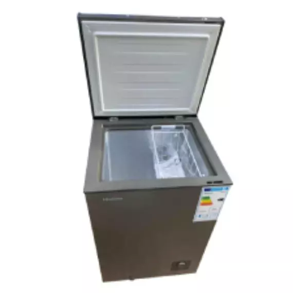 The Hisense 95L Chest Freezer has an A energy rating, Fast Freeze and ensures food stays frozen for up to 135 hours in the event of load shedding. KEEP FOR 135H This function is very useful when it comes to emergency situations. It’s possible that food can stay frozen for up to 135 hours after the power has shut off. EASY CLEANING The removable multi-sealed door design can effectively isolate external heat and make cleaning simpler. SUPER FREEZER This function makes freezing very quick. This energy-saving function can lock vitamins in your food and helps to keep the original flavor as much as possible. This is because the temperature can drop to at least -30℃ quickly and create cold air rapidly to preserve fresh food. MY FRESH CHOICE TECHNOLOGY The chill technology allows you to switch between freezer, fridge, and chill modes, giving you more flexibility. Feature Keep For 135H Easy Cleaning Super Freezer Capacity: 95 L Energy Efficiency Level: A Cooling Feature: Defrost Colour: Grey Or White Depending Stock Basket :1 Lock And Key Function: Multi Mode Energy Consumption Per Year: 220 Specification: Product Identification Description of appliance: One door Type: Chest Freezer General Features Kind of coolant / Charge (R134a/R600a) / grammes: R600a / 40g Freezer compartment star rating :4 Star Gross capacity:95 L Net capacity:95 L Net capacity fridge compartment: N/A Net capacity freezer compartment:95 L Climate class: SN=10~32°C, N=16~32°C, T=18~43°C Freezing capacity / 24 hours:9,5 kg / 24 h Max noise level:40 dB(A) Max storage time by power failure (Freezer):24 h Foaming components (R141b / C-P):PU / C-P Certifications (CE / ISO 9001/2 / LGA etc.):CE / CB / GS Aesthetics Handle (External/Integrated):External Door design: Foaming door Available colors: Grey Key Features Defrosting (Fridge / Freezer): Manual Control system: Mechanical NO FROST (Fridge / Freezer): No Wind Air System (Active Cooling / fridge only):No Other Length of cable/incl. plug: 150cm Product Dimensions & Load ability Unit dimensions with-out handle (W / D / H): 55 x 46 x 83 cm Packing dimensions (W / D / H): 575 mm x 495 mm x 890 mm Net weight: 22 kg Gross weight: 24 kg Power Supply Voltage :220-240V Frequency:50Hz Energy Efficiency Class: A Energy consumption (EN153) per 24 h: 0,600 kWh / 24 h Energy consumption / year:219 kWh / year Power input & current :120W / 0.8A
