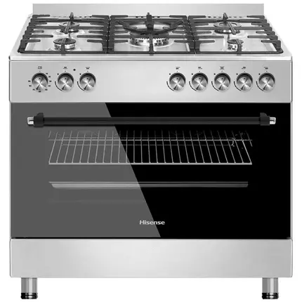 Hisense HF942GEES 4 Burners Gas 2 Electric Stove features a stylish matte finish and an easy-clean oven interior. Conveniently store items before or after cooking with the built-in storage compartment. HF942GEES has a double-layer glass door that insulates the oven which can reach temperatures over 200°C without heating the exterior of the oven. The convection fan allows heat to circulate throughout the oven thus, ensuring an even cooking temperature. HF942GEES gas burner ignites automatically and the flame can be adjusted to the desired heat intensity Feature Easy clean interiors Easily clean the interior of the oven Convection Fan Heat is circulated throughout the oven ensuring an even cooking temperature Storage Compartments Conveniently store items before or after cooking with the built-in store compartment Double-layer Glass Door The double-layer glass door insulates the oven which can reach temperatures over 200°C without heating the exterior of the oven Wok Burner Prepare stir-fry like a chef with the dedicated high-power wok burner Features: Matte Finish Auto-ignition Convection Fan Double-layer Glass Door Storage Compartment Easy-clean Interior Multi-Function 90x90cm dimensions Wok Burner Electric oven Flame Failure Device Specifications: Color: Silver Matt finished: Yes Auto Ignition: Yes Convection Fan: Yes Double Layer glass door: Yes Easy clean interior: Yes Storage compartment: Yes Multi-Function: Yes Wok Burner: Yes Flame failure device: Yes Weight: 76kg