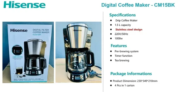 Start your day perfectly with the Hisense CM15BK Digital Drip Coffee Maker. Program it the night before to wake up to the aroma of freshly brewed coffee, saving you time and ensuring a rich, hot cup is ready when you are.
