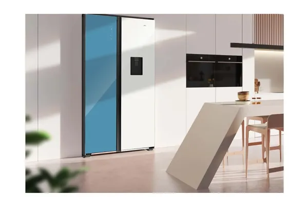 1x Hisense H670SDBL-WD Delectable Range Side By Side Refrigerator Blue and White