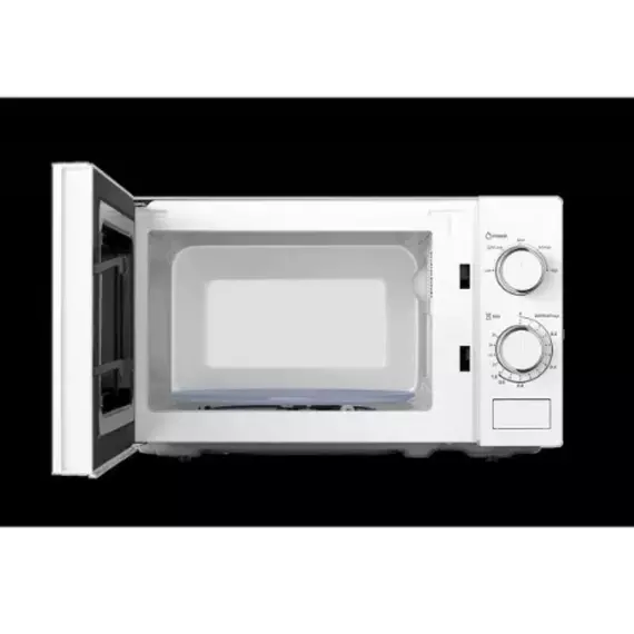 Stylish yet simple to use microwave to compliment any kitchen Feature Mechanical knob function 6 Microwave power levels Defrost function 35min Cooking timer Door safety lock Features: Mechanical knob control Without grill function Matte black design White painted cavity 6 microwave power levels 35mins cooking timer Defrost function Door safety lock Cooking end signal Specifications: Size (L): 20 Control Type: Mechanical Open Type: Push Button Function: Solo Defrost: Yes Digital clock; N/A Timer: 30 mins Power level: 6 Colour Front: White + Black Housing: White Knob: White Handle/button: White Door Glass: Black Cavity: White Dimensions Dimensions (W×D×H)|(cm): 9.5 x 17 x 11.5 Packing dimension (mm): 466 x 362 x 268 Gross weight (kg): 10 Net weight (kg): 9,5 Turntable size (mm): 245 Power Supply Voltage: 230V Frequency: 50Hz Microwave power (W): 700