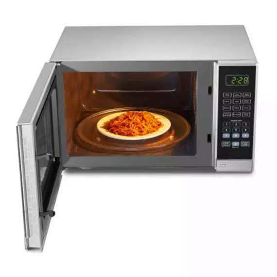 Pre-programmed settings for popular foods, including potato, beverage, popcorn, frozen vegetables, pizza, and dinner plate. Simply select and cook your food with ease.