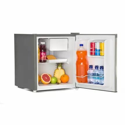 A+ ENERGY CLASS The A+ energy class rating saves 22% more than the A class rating, which means the appliance is kinder to the environment, & saves you money too. REVERSIBLE DOOR HINGES The reversible door hinges allow for ease of operation whether you are left or right-handed. Your fridge can neatly fit into any space in your home without bothering about the fridge’s opening direction. Specifications: Colour: Silver Description of appliance: Bar Fridge Type / appliance: R Free standing: Yes Material: Plastic, Metal & Glass Dimensions: 43.9 x 47 x 51cm Weight: 13.5kg Capacity: 42 Litre Voltage: 230-240V Frequency: 50Hz Aesthetics Door Profile: Rounded Handle: Integrated Basic Specification Net Capacity: 44L Net capacity :44L Net capacity fridge compartment: 44L Net capacity freezer compartment: 0L Climate class