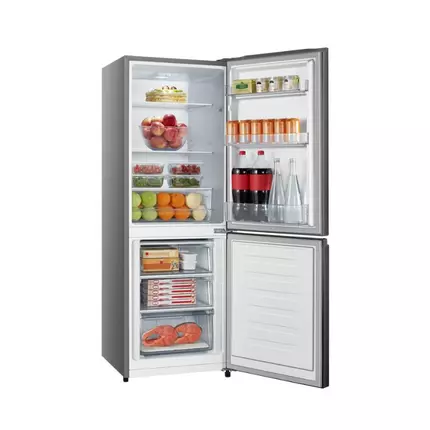 Features: Titanium Inox Finish A Energy Rating Recessed Handle Big Guard for 2L Bottles Long Life LED Light Removable & Adjustable Tempered Glass Shelves Adjustable Feet Reversible Doors Low Noise 42dB Full Truck Load: 150 Dimension (W*D*H mm) : 550*566*1605 Specifications : Brand: Hisense Power: 34.792 W Capacity: 223.0 L Energy Rating: A Childproof: No Power Generation: Electricity Egg Tray included Ice Cube Tray included Ice Dispenser: No Merchandising Tags: Top Picks Number of shelves: 2 Number of drawers: 3 Adjustable Racking LED Display / Touch control: No Fast Freeze Setting: No Basic Colours: Silver 223L Total Nett Capacity 160L Fridge Nett Capacity 63L Freezer Nett Capacity Assembled Dimensions: 55.0 x 56.6 x 160.5 cm What's in the box: 1 x Fridge 1 x User Manual