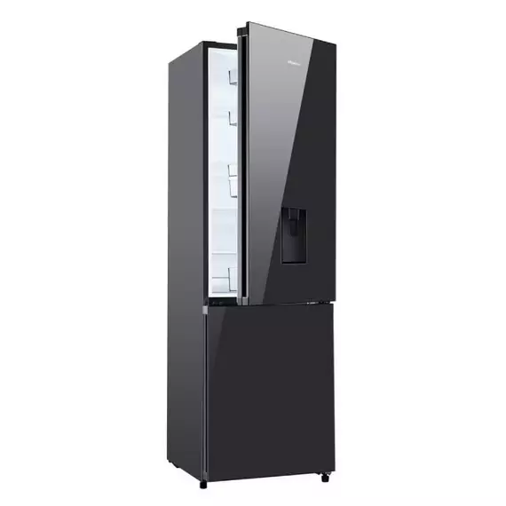 Hisense Refrigerator 263L Water Dispenser, Bottom Freezer, Defrost Cooling, A+ Energy Class, Recessed Handle, Big Guard, LED Light, Tempered Glass Black Mirror H370BMIB-WD