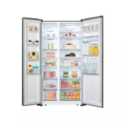 Discover the Hisense H670SDP-WD 508L Side By Side Refrigerator with No Frost technology, stylish pink & white design, and an integrated water dispenser. Perfect for modern kitchens, it offers ample storage, energy efficiency, and advanced cooling for lasting freshness." Key Features: Large Capacity (508L): Spacious design to store all your groceries, beverages, and frozen items effortlessly. Energy Efficient: Operates efficiently, reducing energy costs while keeping your food fresh. Stylish Pink & White Finish: Modern, elegant design that complements your kitchen decor. No Frost Technology: Prevents ice build-up and ensures uniform cooling for better food preservation. Water Dispenser: Enjoy chilled water conveniently without opening the fridge. Side By Side Doors: Easy access to both fridge and freezer compartments. LED Lighting: Bright, energy-saving LED lights illuminate every corner. Adjustable Shelves: Customize storage to fit items of different sizes. Multi Air Flow: Maintains optimal temperature and humidity levels for long-lasting freshness. Perfect for: Modern households that value style, convenience, and cutting-edge technology in their kitchen appliances Specifications: Brand: Hisense Model: H670SIT-WD Type: Refrigerator Description of appliance: Side By Side Capacity: 508L Colour: Pink & White A+ energy efficiency class, energy saving Multi air flow system, no frost Fresh air filter Touch LED touch control Removable tempered glass shelves 2L Water Tank Door opening alarm Broad climate design (N,ST) Long life LED lights, saving energy Net Dimensions (W*D*H, mm): 910×646×1786 Container load (40’HQ): 48 Child Lock Function