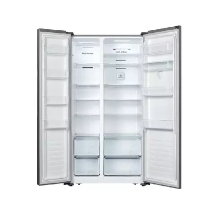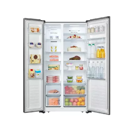 Key Features: A Energy Rating Products with an A Energy Rating offer excellent energy efficiency, helping you save on electricity bills while reducing your carbon footprint. This rating ensures that you’re choosing a product that performs optimally with minimal energy consumption. Food Sensor The Food Sensor monitors the internal temperature of your dishes, ensuring that they are cooked to perfection. This feature takes the guesswork out of cooking, allowing you to achieve precise results, whether you're making a tender roast or delicate pastries. Total No Frost Total No Frost technology prevents the buildup of ice and frost in your fridge and freezer, eliminating the need for manual defrosting. This feature ensures a hassle-free and energy-efficient cooling experience. Water Dispenser The integrated Water Dispenser offers easy access to fresh, chilled water directly from your fridge. This feature ensures you always have refreshing water on hand, without taking up extra space inside the fridge. Features: Finish: Titanium Inox Net capacity: 508L A+ energy efficiency class, energy saving Multi air flow system, no frost Fresh air filter Internal Digital touch control Removable tempered glass shelves Multiple mode to suit different refrigeration needs, such as super cooling, super freezing mode 2L Water Tank Broad climate design (N,ST) Long life LED lights, saving energy Net Dimensions (W*D*H, mm): 910x646x1786 Container load (40&rsquoHQ): 48 Specifications: Brand: Hisense Model: H670SIT-WD Type: Refrigerator Description of appliance: Side By Side Type / appliance: