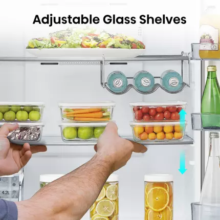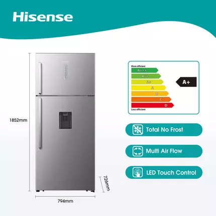 Features: Total No Frost Multi Air Flow Automatic Ice Maker Non-plumbing Water Tank Description of Appliance: Combi Fridge Type / Appliance: TM Free-standing: Yes Technical Specifications: Door Profile: Rounded Handle: External Available Color: Brushed Stainless Steel Basic Features: Net Capacity: 535L Net Capacity Fridge Compartment: 428L Net Capacity Freezer Compartment: 107L Climate Class: T=16~43°C Kind of Coolant / Charge (R134a/R600a) / Grammes: R600a/50 Freezer Compartment Star Rating: 4 Star Freezing Capacity / 24 hours: 10kg / 24h Max Noise Level: 43 dB(A) Max Storage Time by Power Failure (Freezer): 19h Certifications (CE / ISO 9001/2 / LGA etc.): CB/CE/GCC Key Features: Defrosting Fridge / Freezer: Automatic Control System: Electronic Frost Free (Fridge/Freezer): Yes Multi Airflow (Fridge/Freezer): Yes Easy Cleaning Door Seal: Yes Crisper with Humidity Control Function: No Tempered Glass: Yes LED Light (Fridge/Freezer): Yes Control Panel: External Control Display: Yes External Control Display with LED/LCD: Yes Super Freezing (Freezer): Yes Fridge Compartment: Shelves (Number / Type): 3 Shelf (on Crisper): 1 Crisper(s) (Number / Color): 1 Door Storage Rack(s) (Total): 1 full width + 4 half Door Covered Dairy Compartment: N/A Door Bottle Holder: N/A Freezer Compartment: Drawer(s): N/A Shelve(s): 1 shelf Door Storage Rack(s) (Total): 2 Full width rack Accessories : Interior Light: LED Eggs Tray(s) / Total Number of Eggs: N/A Packing Dimensions & Loadability: Unit Dimensions with Handle (W / D / H): 794 x 726 x 1852mm Packing Dimensions (W / D / H): 837 x 728 x 1925mm Net Weight: 85kg Gross Weight: 93kg Power Supply: Voltage: 220-240V Frequency: 50Hz Energy Efficiency: Energy Efficiency Class: A+ Energy Consumption (EN153) per 24 h: 1.10 kWh / 24 h Energy Consumption / Year: 400 kWh / year