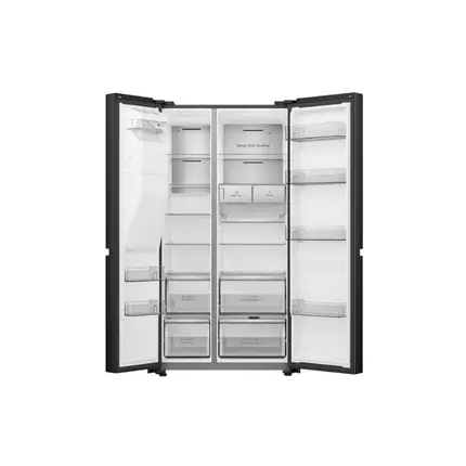 The Hisense H780SB-IDL boasts a massive net capacity of 601L, allowing you to store all your groceries without any hassle. With an A+ energy efficiency rating, you can enjoy maximum performance while saving on energy bills. Thanks to the frost-free function and multi-air flow technology, this fridge surrounds your food in freshness, ensuring that your fruit, veggies, and other perishables stay fresh for longer. Plus, the non-plumbed Ice & Water Dispenser offers an added convenience that allows you to quench your thirst without the need for unnecessary modifications to your kitchen and home. Features: A+ Energy Rating Big capacity WIFI +APP Metal cooling Non-plumbed Ice and water dispenser with 4.5L water tank Total No Frost Multi air flow system Super Freeze, Super cool,Eco Mode Inverter compressor and low noise LED Lighting Digital Sensors Touch electronic control Bigger Racks,160mm depth for 2L beverage bottle Muti-function Wine Rack Technical Specifications: Description of Appliance: Side By Side Type / Appliance: Free-standing Door Profile: Flat Handle: Integrated Available Colors: Gray Glass, Inox Looking, Sand Color, White Basic Features: Net Capacity: 601L Net Capacity Fridge Compartment: 415L Net Capacity Freezer Compartment: 186L Kind of Coolant / Charge (R134a/R600a) / Grammes: R600a/72g Freezer Compartment Star Rating: 4 Star Freezing Capacity / 24 hours: 13kg / 24h Max Noise Level: 41 dB(A) Plumbing Required: No Foaming Components (R141b / C-P): C-P Certifications (CE / ISO 9001/2 / LGA etc.): CB/ERP Water Dispenser: Yes Display: LED Key Features: Defrosting Fridge / Freezer: Automatic / Automatic Control System: Electronic Frost Free (Fridge/Freezer): Yes Multi Airflow (Fridge/Freezer): Yes / Yes Huge Box: Yes Easy Cleaning Door Seal: Yes Crisper with Humidity Control Function: Yes Adjustable Spill-proof Shelves: No Tempered Glass: Yes LED Light (Fridge/Freezer): LED, 3W(top)+1W(ice maker) Control Panel: External Control Display: Yes External Control Display with LED/LCD: Yes Temperature Range (from > to): Fridge: 0℃≤tma≤4℃ / Freezer: tf≤-18℃ Super Cooling (Fridge): Yes Super Freezing (Freezer): Yes Over Temperature Alarm (Red Lamp / LCD-LED / Acoustic): No Adjustable Thermostat: Yes Connectivity: WiFi + APP + Intelligent Voice Fridge Compartment: Shelves (Number / Type): 3 Shelf (on Crisper): 2 Vegetable Compartment (Number / Color): 2 / Transparent Flexi-fresh Box: Yes (Half-width box) Wine Rack (Number / Type): Yes / Multi-function design My Fresh Choice (Call Chill Compartment Too): 0 Ice Dispenser: Auto Auto Ice-maker: Yes Protection Rod(s): 0 Reversible Door: No Eggs Tray(s) / Total Number of Eggs: 2 Freezer Compartment: Drawer(s): 2 / Transparent Shelf(s): 4 Flap(s): No Packing Dimensions & Loadability: Depth with Open Door: 1055mm Net Weight: 107kg