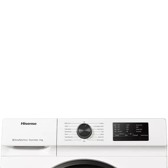 By providing your washing machine a 95-degree thorough clean, the Hisense Drum Clean enables you to preserve it in the best condition possible. Your garments will be better protected and taken better care of thanks to the snowflake-shaped drum design. Efficiency A+++ -20% Quick Wash Snowflake Drum Drum Clean Features: 7 kg 1200rpm Front Load washer Durable Inverter Motor LED Display 15 programmes 15 mins Quick Wash Pause and add Allergy Steam Care Baby Steam Care Drum cleaning program Favourite Button Stainless Steel Drum Child Lock Delay Timer H-W-D- 850x595x390 mm Specifications: Brand: Hisense Color: White Capacity:7 Kg Weight (KG):58 Type: Front Load Height (CM):85 Width (CM):59.5 Depth (CM):46