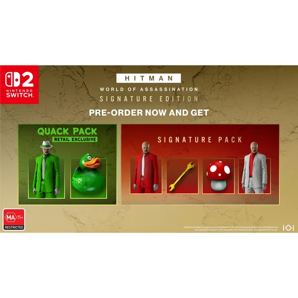 HITMAN World of Assassination - Signature Edition brings together the best of HITMAN, HITMAN 2 and HITMAN 3 including the main campaign, Contracts mode, Escalation, Elusive Target arcades, featured live content, Freelancer game mode plus all HITMAN 2 Expansion Pack & HITMAN 3 Deluxe Pack content.