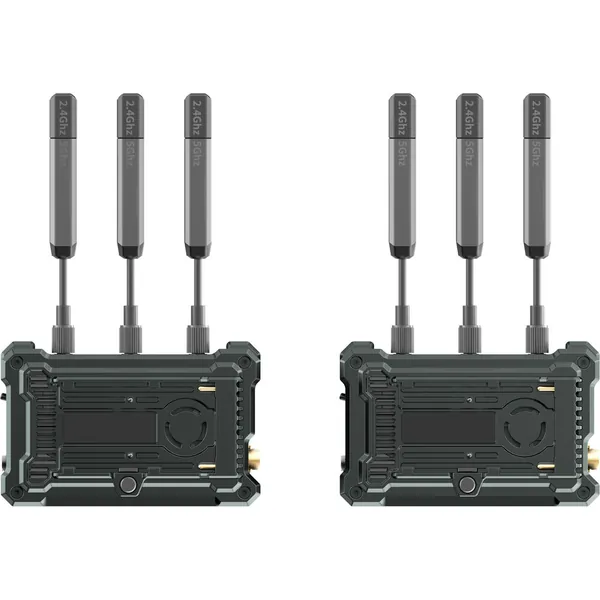 Add 4K30 wireless video transmission to your production using the versatile Pyro S 4K HDMI/SDI Wireless Video Transmission System from Hollyland. The system includes a wireless transmitter, a wireless receiver, seven antennas, a USB-C adapter, a DC power adapter, and an adjustable shoe adapter mount. The transmitter provides HDMI and SDI inputs and features extremely low 50 ms latency that sends line-of-sight transmission from up to 1300' away to the included receiver. When using broadcast mode using up to four receivers and two mobile devices, the system supports up to 650' away. The receiver outputs to HDMI and SDI.