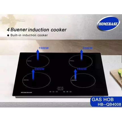 Specifications : Brand: Homebase Model: HB-QB4008 Type: Built in Burners: 4 induction Power: 2 plate 1500W, 2 plates 2300W