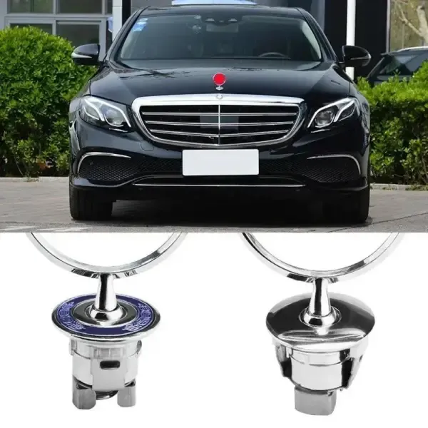Hood Emblem Standing Logo Mb Hood Star Logo Chrome Mb Blue CC-5637 Compatible With Mercedes A B C E G Gl Gle Gle Ml R S V Class Bonnot