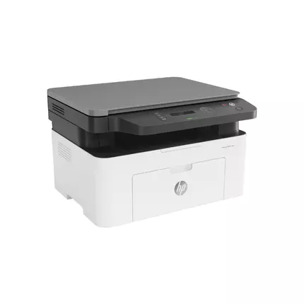 HP LaserJet Monochrome Multifunction Printer Wireless 3in1 Print/Scan/Copy 135w Get productive MFP performance at an affordable price. Print, scan, and copy, produce high-quality results, and print and scan from your phone. Dynamic security-enabled printer. This printer is intended to work only with cartridges that have a new or reused HP chip, and it uses dynamic security measures to block cartridges using a non-HP chip. Periodic firmware updates will maintain the effectiveness of these measures and block cartridges that previously worked. A reused HP chip enables the use of reused, remanufactured, and refilled cartridges. Legendary quality at an affordable price Get the quality you trust and sharp black text with this affordable printer. Designed to fit your space Quickly and easily print with an MFP that's designed to fit into your workspace like a glove. Easy mobile printing and scanning with HP Smart app Print, scan, and copy from virtually anywhere, and get simple setup on your phone. Specifications: Product naming Model name: HP Laser MFP 135w Product number: 4ZB83A What's included and accessories What's in the box: HP Laser MFP 135w; Preinstalled introductory HP LaserJet Black print cartridges; Setup Guide; Reference Guide; Regulatory Statements Flyer; Power cord; USB cable Connectivity Ports: Hi-Speed USB 2.0; Wireless 802.11 b/g/n Wireless capability: Yes, built-in Wi-Fi 802.11b/g/n Copy Copier settings: Copies; Original Size; Reduce/Enlarge; Darkness; Original Type; Collation; 2-Up; 4-Up; ID Copy; Adjust Background; Auto Fit Copy Maximum number of copies: Up to 99 copies Copy reduce / enlarge settings: 25 to 400% Copy speed (black, normal): Up to 20 cpm Copy resolution: Up to 600 x 600 dpi Environmental Acoustic power emissions (active, printing): 6.5 B(A) (printing at 20 ppm) Recommended operating humidity range: 20 to 70% RH (non-condensing) Recommended operating temperature range (Celsius): 15 to 27°C Recommended operating temperature range (Fahrenheit): 59 to 80.6°F Storage temperature range (Celsius): -20 to 40°C Storage temperature range (Fahrenheit): -4 to 104°F Environmental specifications: Mercury free Memory Memory: 128 MB Maximum Memory: 128 MB Mobile printing capability Mobile printing services: HP Smart App; Apple AirPrint™; Google Cloud Print™; Mobile Apps; Mopria™ Certified; Wi-Fi® Direct Printing Networking Network protocols, supported: Via built-in networking solution: TCP/IP, IPv4, IPv6; print: TCP-IP port 9100 Direct Mode, LPD (raw queue support only), Web Services Printing; discovery: SLP, Bonjour, Web Services Discovery; IP Config: IPv4 (BootP, DHCP, AutoIP, Manual), IPv6 (Stateless Link-Local and via Router, Stateful via DHCPv6); management: SNMPv1/v2/v3, HTTP Paper handling Input capacity: Up to 150 sheets Output capacity: Up to 100 sheets Media sizes supported (metric): A4; A5; A5(LEF); B5 (JIS); Oficio; Envelope (DL,C5) Media sizes supported (U.S. standard): Letter; Legal; Executive; Oficio; Oficio 8.5x13 in; Envelope (No.10, Monarch); 4x6 in Media sizes, custom (metric): 76 x 127 to 216 x 356 mm Media sizes, custom (U.S. standard): 3 x 5 to 8.5 x 14 in Media types: Plain, Thick, Thin, Cotton, Color, Preprinted, Recycled, Labels, CardStock, Bond, Archive, Envelope Media weight supported (metric): 60 to 163 g/m² Media weight supported (U.S. standard): 16 to 43 lb Paper handling - ADF Automatic document feeder capacity: Standard, 40 sheets Physical dimensions Maximum dimensions (W x D x H, metric): 406 x 424 x 253 mm Maximum dimensions (W x D x H, U.S. standard): 15.98 x 16.59 x 9.96 in Weight (metric): 7.46 kg Weight (U.S. standard): 16.45 lb Power Energy savings feature technology: HP Auto-Off Technology; Power save Power supply type: Internal (Built-in) power supply Power supply: 220 to 240 VAC, 50/60Hz Power consumption: Active Printing: 300 watts, Ready: 38 watts, Sleep: 1.9 watts, Manual off: 0.2 watts, Auto off/Manual on: 0.2 watts Print cartridges Number of print cartridges: 1 (black) Replacement cartridges: HP 105A Black Original Laser Toner Cartridge (~1000 yield); HP 106A Black Original Laser Toner Cartridge (~1000 yield); HP 107A Black Original Laser Toner Cartridge (~1000 yield) Printing specifications Print technology: Laser Duplex printing: Manual (driver support provided) Print resolution (best): Up to 1,200 x 1,200 dpi Maximum print area (metric): 216 x 356 mm Monthly duty cycle: Up to 10,000 pages Print languages: SPL Printer smart software features: Manual duplex and booklet print, N-up printing, skip blank pages, poster print, watermarks Regulatory specifications Regulatory model number: SEOLA-1802-03 Safety: IEC 60950-1: 2005 +A1: 2009 +A2 2013 (International); EN 60950-1: 2006 +A11: 2009 +A1: 2010 +A12: 2011 +A2: 2013 (EU); IEC/EN 60825-1: 2014 (Class 1 Laser Product); EN 62479: 2010 /IEC 62749: 2010; Low Voltage Directive 2006/95/EC with CE Mark (Europe); GS Certificate (Germany, Europe); UL/cUL Listed and UC CoC (US/Canada); CAN/CSA C22.2 No. 60950-1-07 2nd Ed. 2014-10; Compliance with Laser safety standards 21 CFR 1002.10 and 1002.11 except for deviations pursuant to Laser notice No. 50, Dated June 24, 2007; Other safety approvals as required by individual countries Electromagnetic compatibility: EN 61000-3-2: 2014, EN 61000-3-3: 2013, EN55024: 2010, EN 55032: 2012/AC: 2013, 47 CFR Part 15, Subpart B I ANSI C63.4-2009, ICES-003 Issue 5, KN32, KN35, GB/T 9254-2008, GB17625.1-2012, CISPR22: 2008, CISPR32: 2012,CNS 13438 (Other EMC approvals as required by individual countries.) Scan Scanner advanced features: Scan to WSD(network support only);Book Scanning; Poster Stitching for multiple scan; Text Converting; Scan to E-Book; Existing File to E-Book Scan technology: Contact Image Sensor (CIS) Scan resolution, hardware: Up to 4800 × 4800 dpi Levels of grayscale: 256 Bit depth: 8-bit (mono); 16-bit (color) Maximum flatbed scan size (metric): 216 x 297 mm Maximum flatbed scan size (U.S. standard): 8.5 x 11.7 in Twain versi