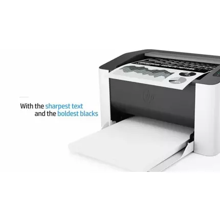 Printing specifications Model name: HP Laser 107w Product number: 4ZB78A Print technology: Laser Duplex printing: Manual (driver support provided) Print resolution (best): Up to 1,200 x 1,200 dpi Maximum print area (metric): 216 x 356 mm Monthly duty cycle: Up to 10,000 pages Print languages: SPL Printer smart software features: Manual duplex, N-up printing, collation, watermarks, accepts a variety of paper sizes and types Connectivity Ports: Hi-Speed USB 2.0 port, Wireless 802.11 b/g/n Wireless capability: Yes, built-in Wi-Fi 802.11b/g/n Memory Memory: 64 MB Maximum Memory: 64 MB Memory card compatibility: None Mobile printing capability Mobile printing services: Apple AirPrint™; Google Cloud Print™; Mobile Apps; Mopria™ Certified; Wi-Fi® Direct printing Paper handling Input capacity: Up to 150 sheets Standard input capacity (envelopes): Up to 10 Output capacity: Up to 100 sheets Media sizes supported (metric): A4; A5; A5(LEF); B5 (JIS); Oficio; Envelope (DL, C5); 76 x 127 to 216 x 356mm Media sizes supported (U.S. standard): Letter; Legal; Executive; Oficio 216x340mm, Oficio 8.5x13 in, Envelope (No.10, Monarch); 4x6 in Media sizes, custom (metric): 76 x 127 to 216 x 356 mm Media sizes, custom (U.S. standard): 3 x 5 to 8.5 x 14 in Media types: Plain, Thick, Thin, Cotton, Color, Preprinted, Recycled, Labels, CardStock, Bond, Archive, Envelope Media weight supported (metric): 60 to 163 g/m² Media weight supported (U.S. standard): 16 to 43 lb Power Energy savings feature technology: HP Auto-On/Auto-Off Technology; Power save Power supply type: Internal (built-in) Power Supply Power supply: 110-volt input voltage: 110 to 127 VAC, 50/60Hz and 220-volt input voltage: 220 to 240 VAC, 50/60Hz Power consumption: 320 watts (Active Printing), 33 watts (Ready), 1.1 watts (Sleep), 0.2 watts (Manual off), 0.2 watts (Auto off/Manual on) Print cartridges Number of print cartridges: 1 (black) Replacement cartridges: HP 105A Black Original Laser Toner Cartridge ( 1000 yield) W1105A; HP 106A Black Original Laser Toner Cartridge ( 1000 yield) W1106A; HP 107A Black Original Laser Toner Cartridge ( 1000 yield) W1107A Physical dimensions Maximum dimensions (W x D x H, U.S. standard): 13.03 x 13.78 x 9.76 in Weight (metric): 4.16 kg Weight (U.S. standard): 9.17 lb