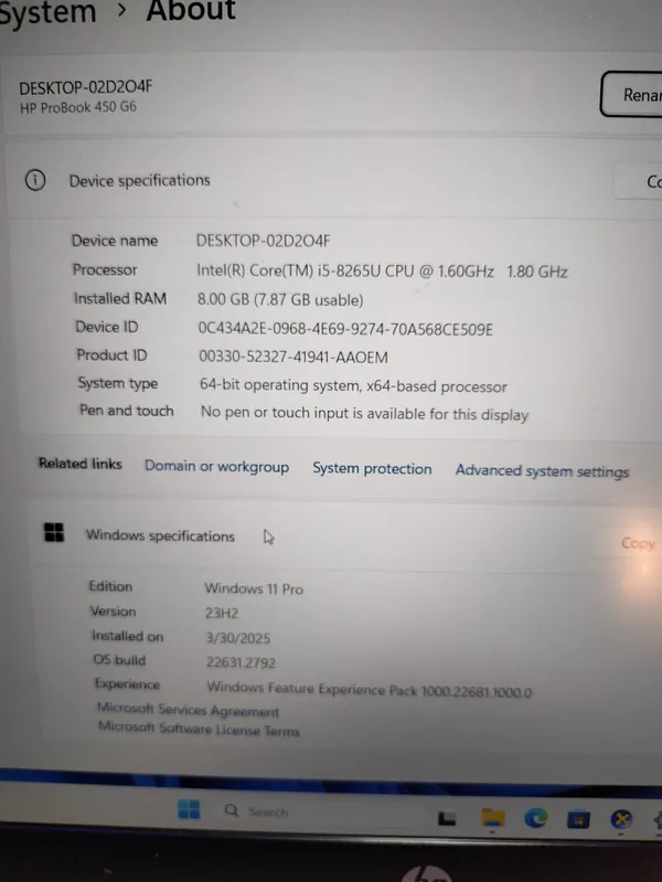 HP ProBook 450 G6 Core i5 8th Gen 256GB SSD 8GB Ram Finger Print FaceID