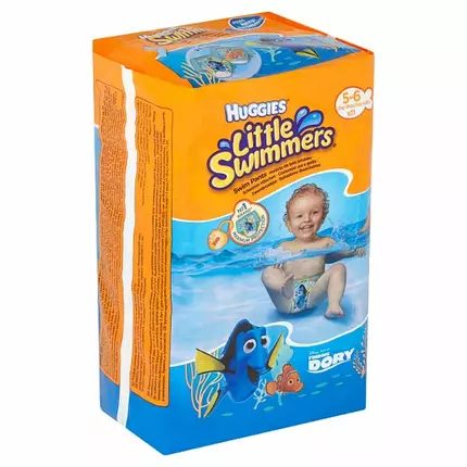 Huggies Little Swimmers: The brand Nr 1 layers of bathing and swimsuit. Water fun without accident? Huggies Little Swimmers swimsuits now have an all-around elastic waist for a comfortable fit during water fun. Pants are made of a unique absorbent material, so they do not swell like a diaper. In addition, special anti-leakage edges that protect against minor accidents. Thanks to the fun and colorful designs of Disney, they look like regular swimsuits. And when the water fun is over, you can tear the side and easily remove the bottom during change. Huggies Little Swimmers Size 2-3 (3-8 kg) bath diapers are specially designed for babies under 6 months. Thanks to the adjustable and stretchy sides, the bottom provides a comfortable fit that stays securely in place when using water. Huggies Little Swimmers swimsuit size 3-4 and 5-6 (7-15 kg and 12-18 kg) now have an all-around elastic waist for a comfortable fit during water leisure