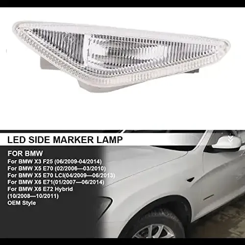 Indicatore Light Side Lamp Compatible With Bmw X3 F25 2011-2015 X5 E70 2006-2013 X6 E71 2007-2014 Indicatore Light Side Lamp 63137171007 Left