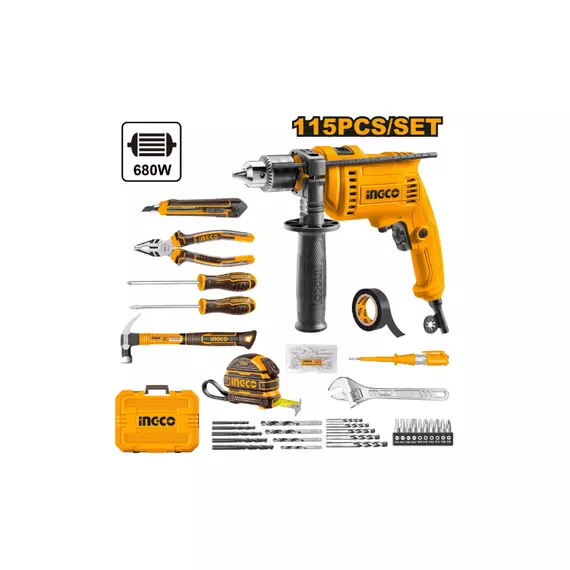 Ingco 115pcs Tools Set with Impact Drill 680W HKTHP11151