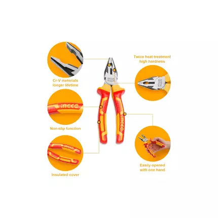 Specifications: Brand: Ingco Model: HKIST3061 Type: Tool Set 1 Pcs SL5.5x125mm Insulation screwdriver 1 Pcs SL4.0x100mm Insulation screwdriver 1 Pcs PH2x100mm Insulation screwdriver 1 Pcs 7" Insulated Combination Pliers 1 Pcs 6" Insulated Diagonal Cutting Pliers 1 Pcs Test Pencil(Test voltage:100-500VAC) Packed by Double Blister