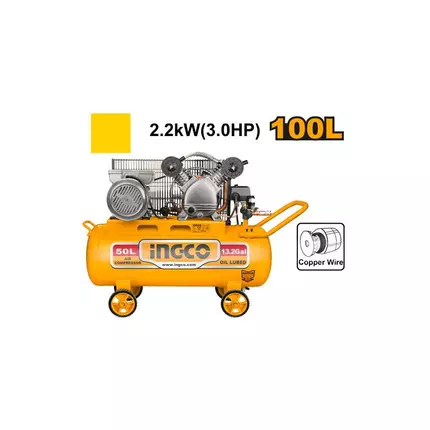 Ingco Air Compressor 2.2kW/3HP 100L with Copper Wire Induction Motor, Belt Driving System AC301008-8/AC1301008