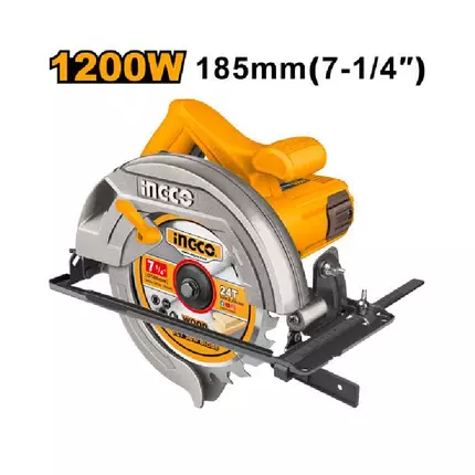 Features: High-performance 1200W motor capable of cutting through a variety of materials. No-load speed of 5000 rpm for fast and precise cutting. Adjustable cutting depth for flexibility in different tasks. Bevel cutting capability for angled cuts. Constructed with heavy-duty materials for durability. Comes with a 185 mm blade for immediate use. Specifications: Brand: Ingco Model: CS18578 Type: Circular Saw Voltage:110-120V~50/60Hz Input Power:1200W No-load speed:5000rpm Blade diameter:7-1/4"x0.78" Cutting capacity: 45 degree:1-3/4" 90 degree:2-9/16" Adjustable cutting depth Adjustable bevel cutting With 1pcs 7-1/4" blade Packed by color box