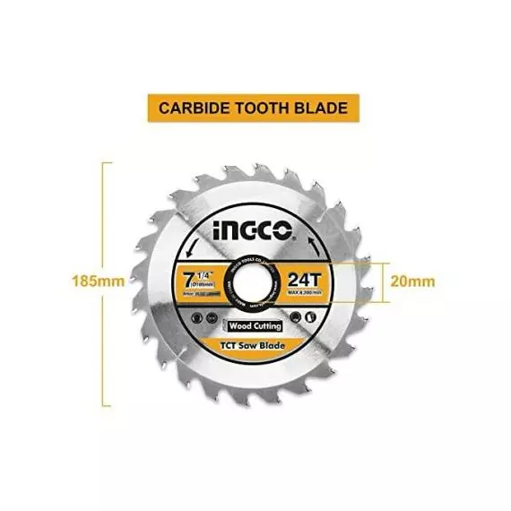 Ingco Circular Saw 1200W with Adjustable Depth & Bevel Cutting, 185mm Blade CS18578