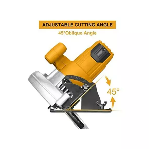 Specifications: Voltage: 220-240V~50/60Hz Input Power:1400W No-load speed:4800rpm Blade diameter:185x20mm Cutting capacity: 45 degree:45mm 90 degree:65mm Adjustable cutting depth Adjustable bevel cutting With 1pcs 185mm blade With 1set extra carbon brushes Packed by color box