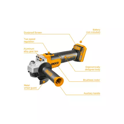 Ingco Cordless Angle Grinder Lithium-ion 20V with Brushless Motor CAGLI201158