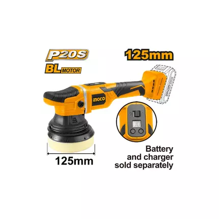 Ingco Cordless Angle Polisher Lithium-ion 20V with Brushless Motor, Digital Display, Speed Control APLI2002