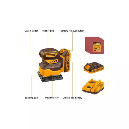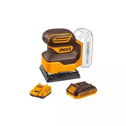 Ingco Cordless Sheet Sander 20V with Battery & Charger, 5pcs Sand Paper CSHSLI20141