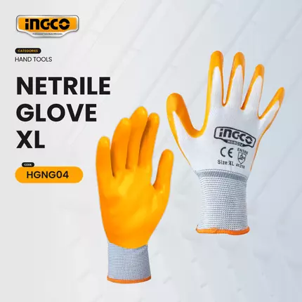 Ingco Extra Large Nitrile Polyester Gloves XL (1 Pair) - Oil Resistant, Super Select Design for Enhanced Grip and Durability HGNG04.