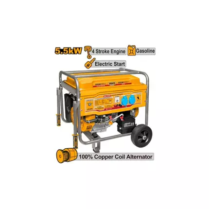 Ingco Gasoline Generator 5.5kW with 4 Stroke Air Cooled Engine, Electric Start, 25L Tank GE55003